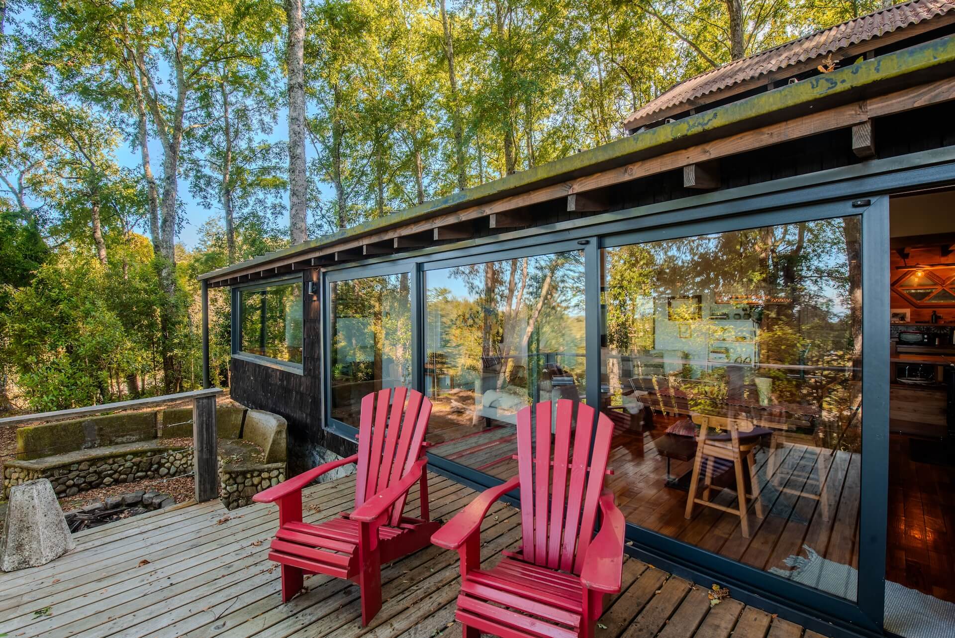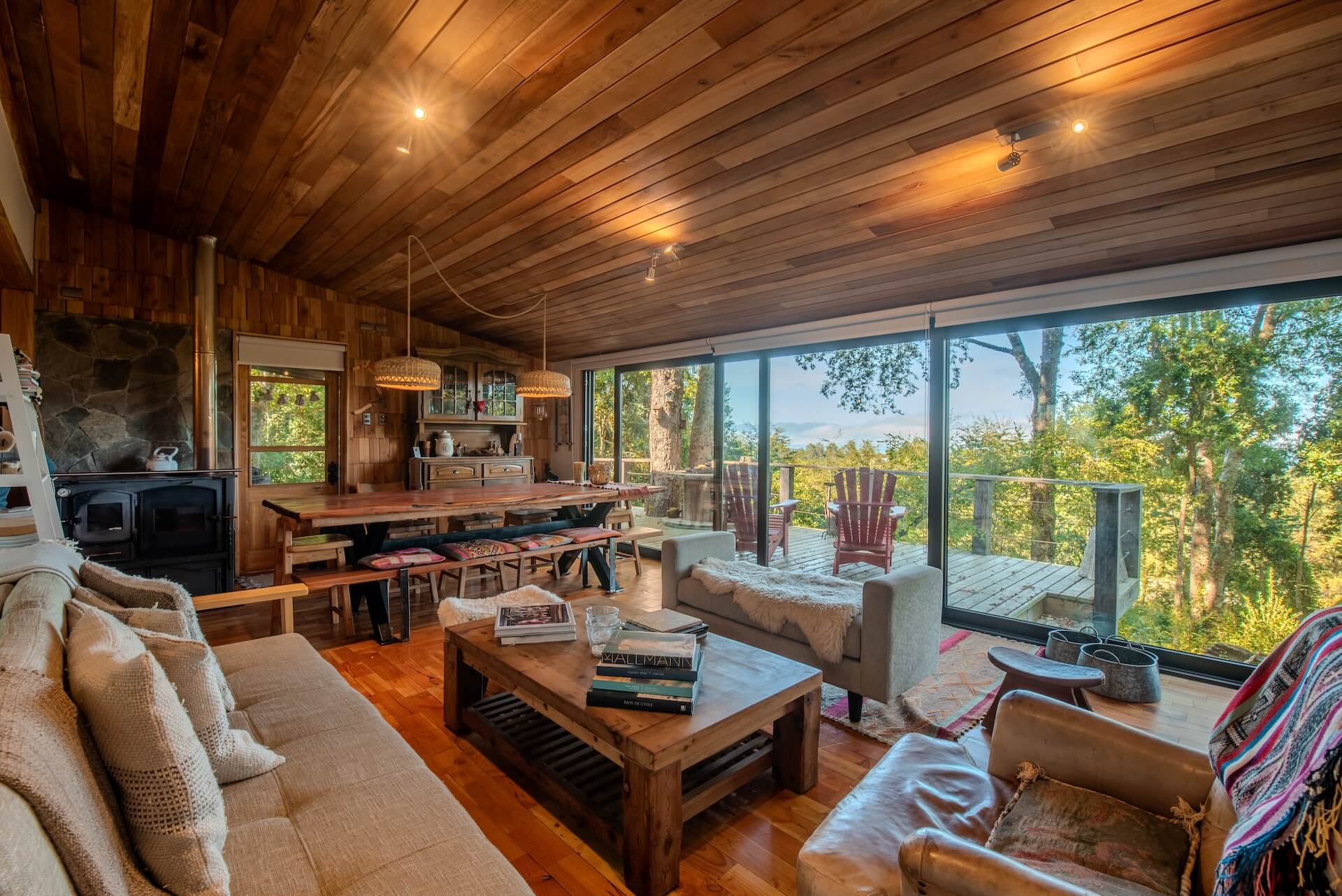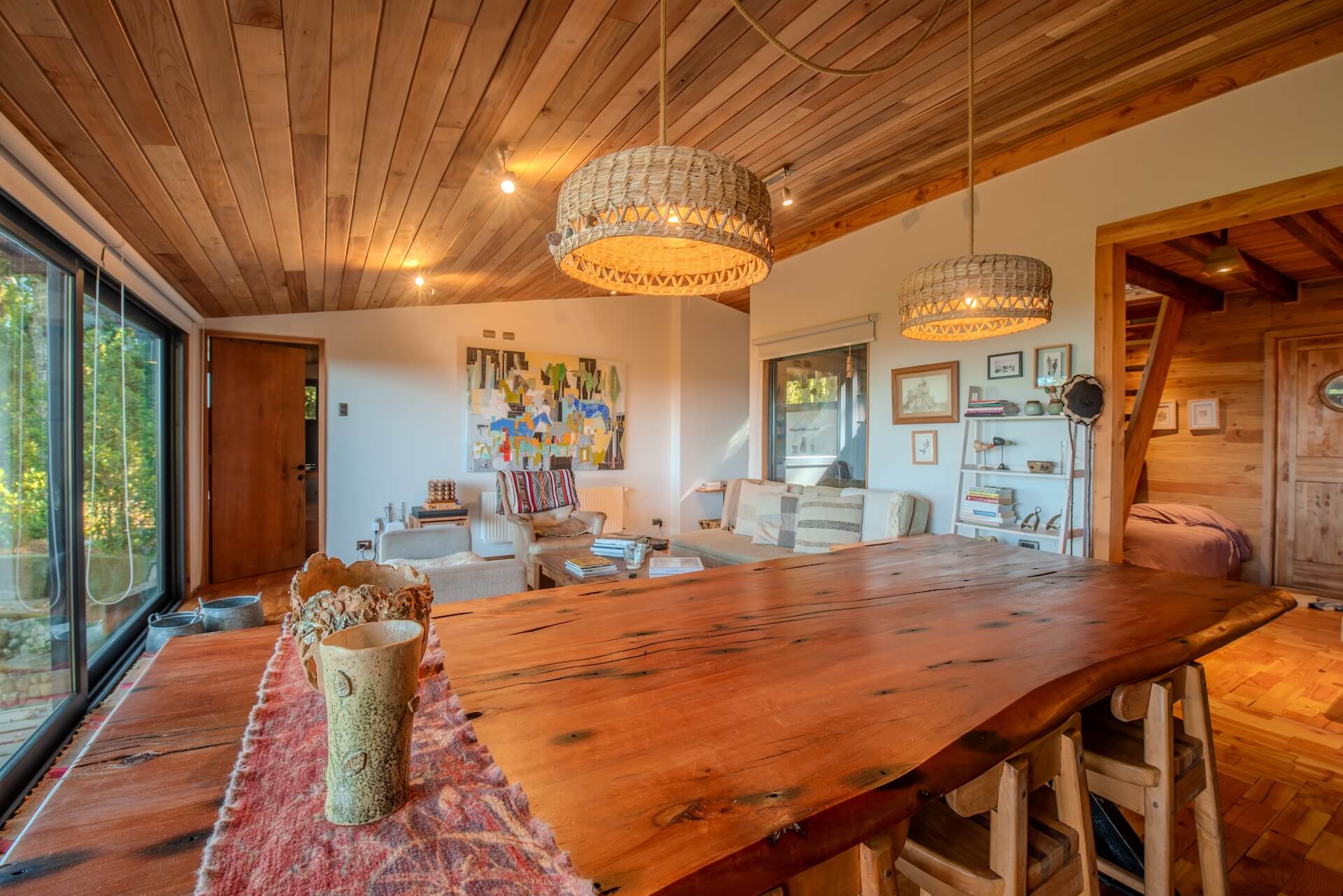 Casa Loma Morchella es una exclusiva residencia ecológica escondida entre bosques centenarios de robles y coigües. Construida íntegramente con maderas recicladas de antiguos galpones patagónicos, esta casa ofrece una experiencia única de conexión profunda con la naturaleza sin renunciar al confort moderno.